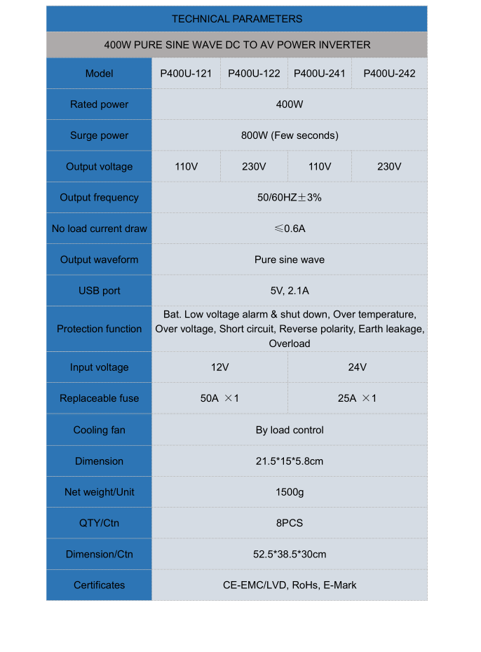400W Tonn Sín DC go dtí inverter cumhachta AC